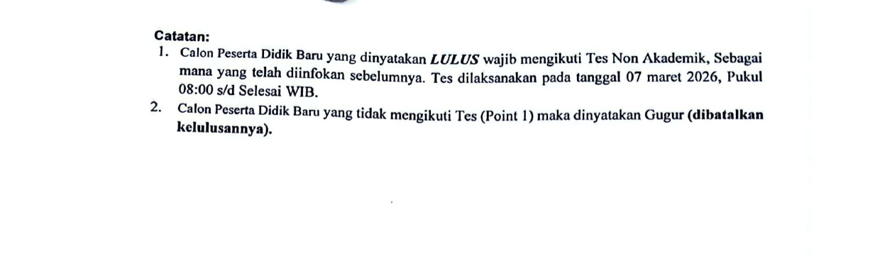 Pengumuman Kelulusan Seleksi Siswa Baru Jalur Undangan dan Prestasi TA. 2026/2027